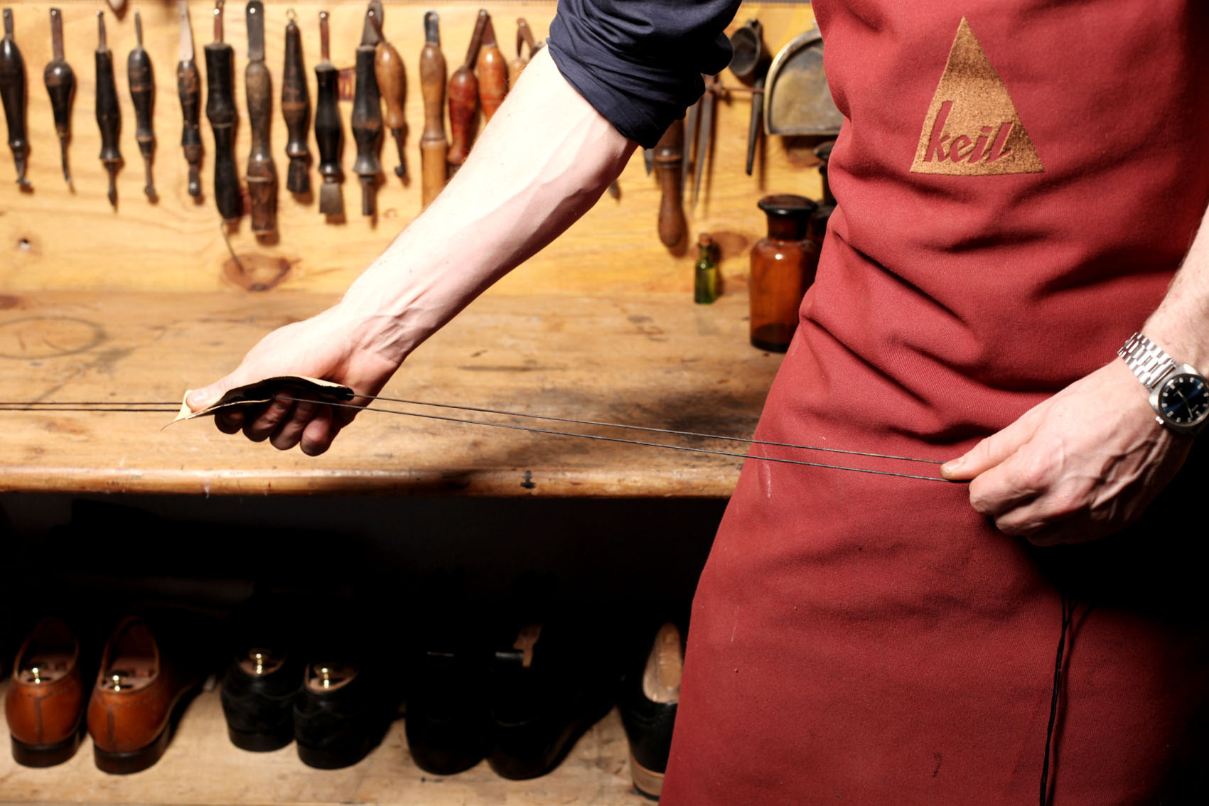 Der Zeitpunkt für das vermessen der Füße ist von immenser Bedeu- tung, damit ein perfekt sitzender Schuh angefertigt werden kann. Es werden Längen-, Breiten-, Höhen- und Umfangsmaße von beiden Füßen genommen, diese sind Grundvoraussetzung für die darauf folgende Leistenanfertigung.